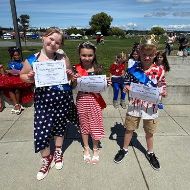 Contestants perform a dance, walk the stage and present to the audience, and introduce themselves. Emcees ask each contestant an impromptu question. They are scored by a panel of judges, then the top two in each division are crowned Queen/King and Princess/Prince and are invited to participate in the Oak Harbor 4th of July parade with Whidbey Royalty.